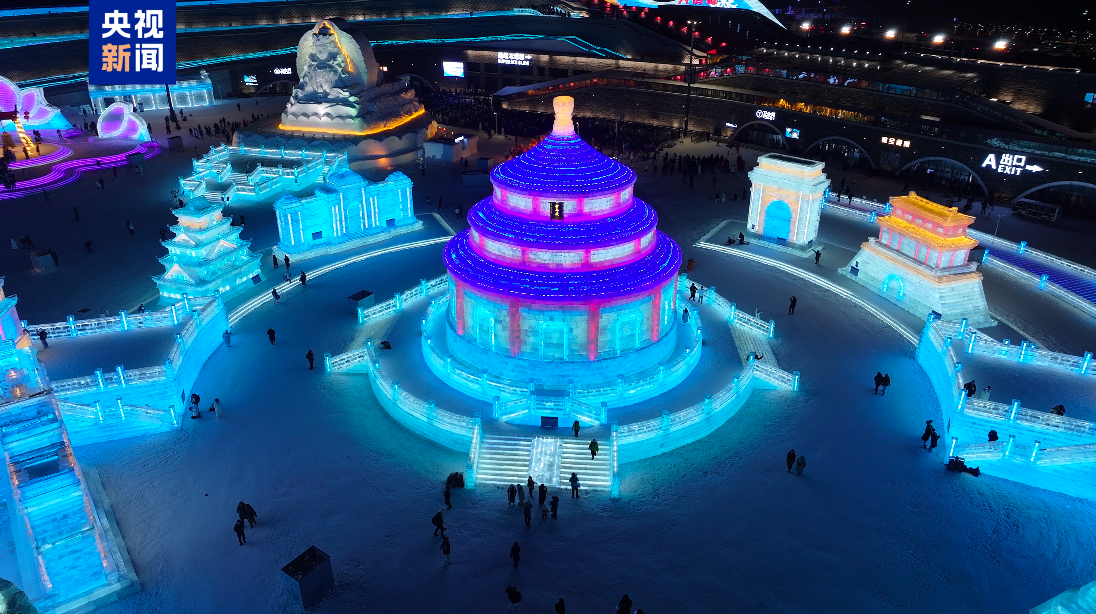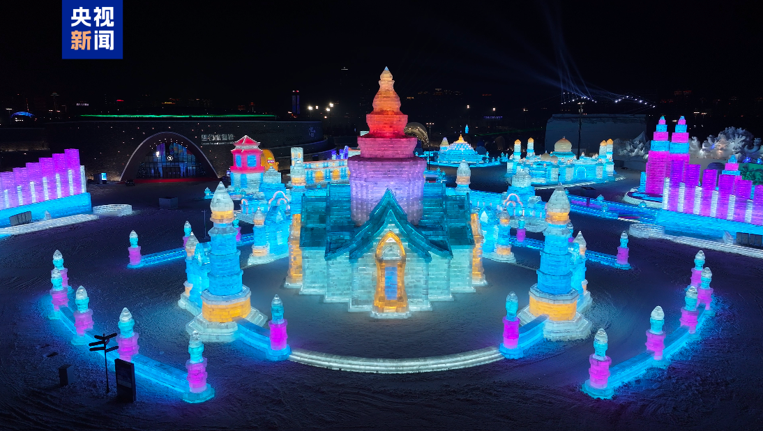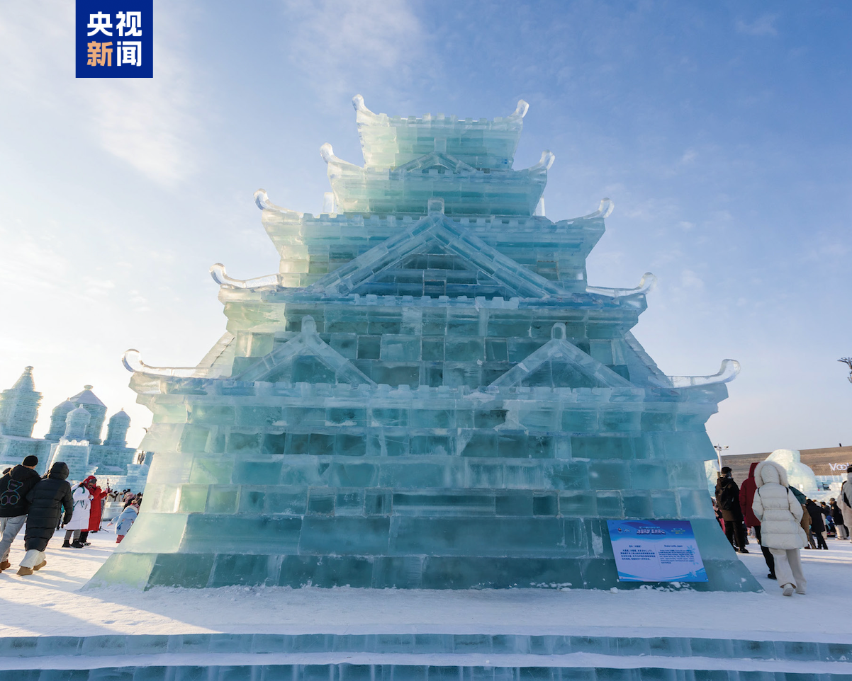 崔師堯說,“哈爾濱作為(wei) 一個(ge) 冰城,我們(men) 想通過這種方式傳(chuan) 播冰雕文化。在整體(ti) 構成上,這些地標性冰雕建築環繞著主塔,以傳(chuan) 達‘冰雪同夢、亞(ya) 洲同心’的主題。”