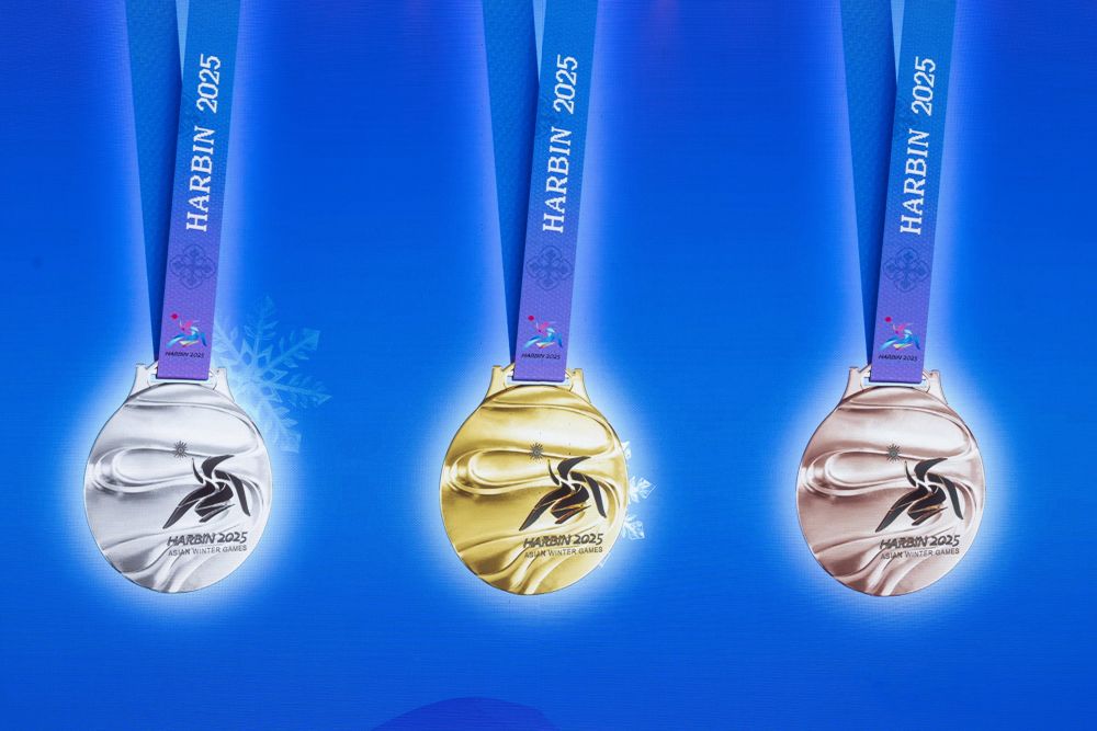 這是亞(ya) 冬會(hui) 獎牌“競速精神”的正麵(2024年10月30日攝)。