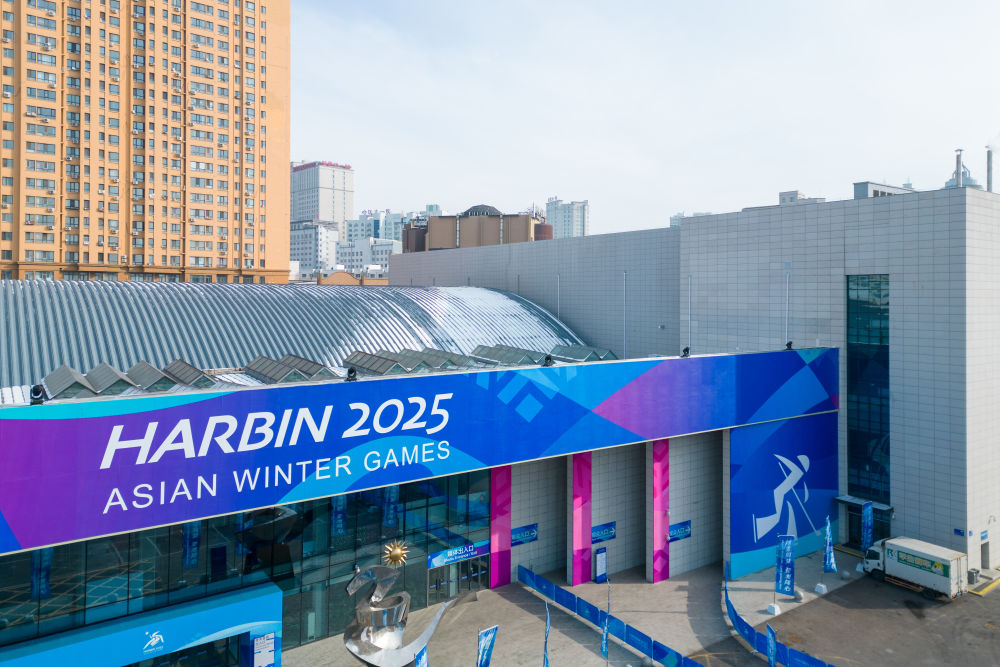 這是2025年1月27日拍攝的哈爾濱市冰球館(男子冰球比賽場館)。