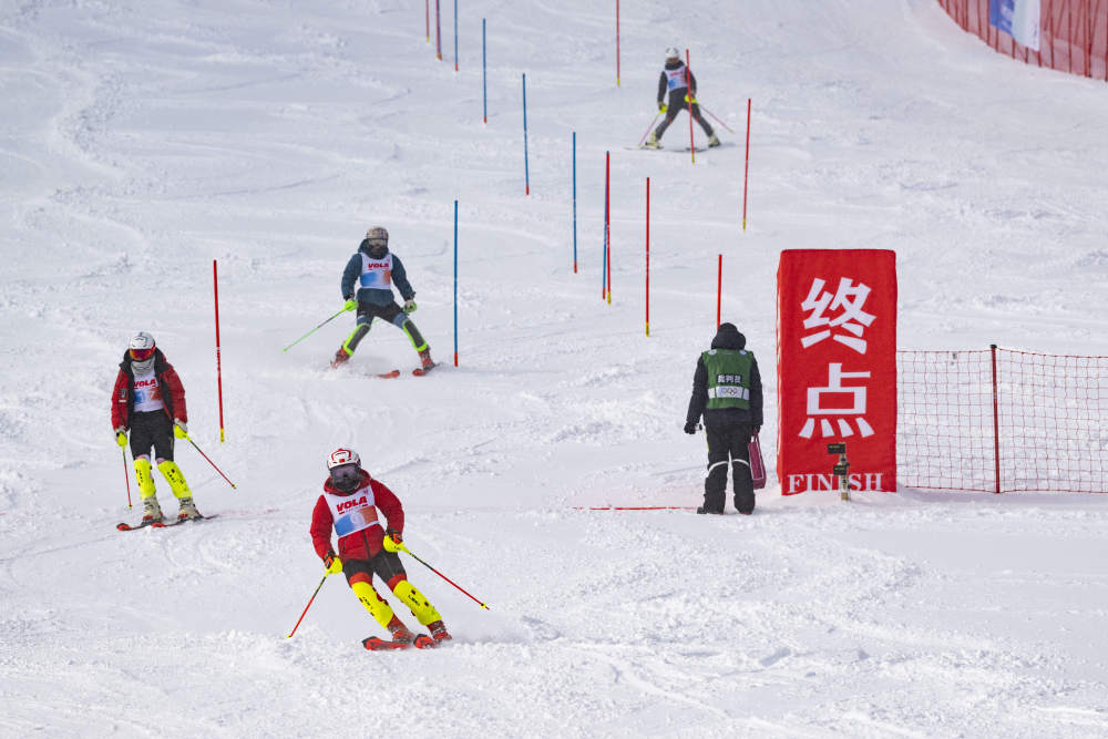 2024年12月22日,參賽選手在觀察男子回轉測試賽線路。當日,2025年哈爾濱亞(ya) 洲冬季運動會(hui) 高山滑雪項目測試賽在黑龍江省亞(ya) 布力體(ti) 育訓練基地(亞(ya) 布力滑雪場)舉(ju) 行。