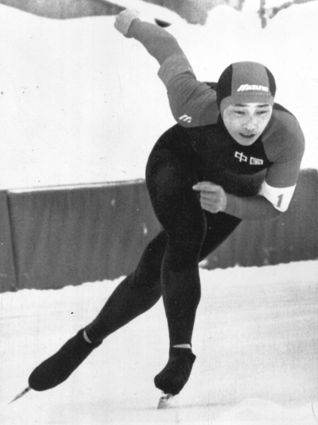 1986年3月3日,中國運動員王秀麗(li) 在日本舉(ju) 行的第一屆亞(ya) 洲冬運會(hui) 女子1000米速滑比賽中獲得金牌。圖為(wei) 王秀麗(li) 在比賽中。傳(chuan) 真照片(新華社發)