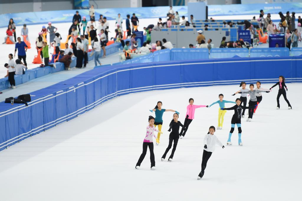 2023年7月1日,小朋友在“冰絲(si) 帶”練習(xi) 花樣滑冰。新華社記者 鞠煥宗 攝