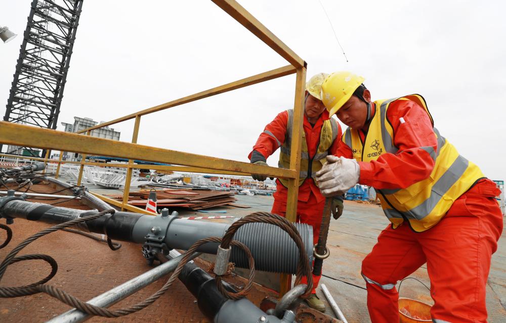 2月7日,工人在獅子洋大橋施工作業(ye) 。新華社記者王瑞平 攝