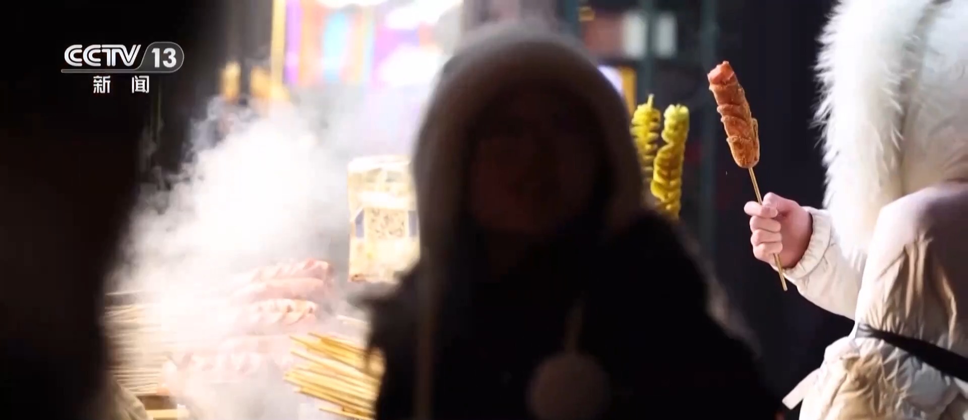 在前麵不遠處,還有紅腸飄來的陣陣香氣。紅腸作為(wei) 哈爾濱特色美食,有著百年曆史,是遊客必嚐的美味。美食和冰雪旅遊在這裏相互交融,為(wei) 哈爾濱的夜晚增添了別樣的煙火氣。