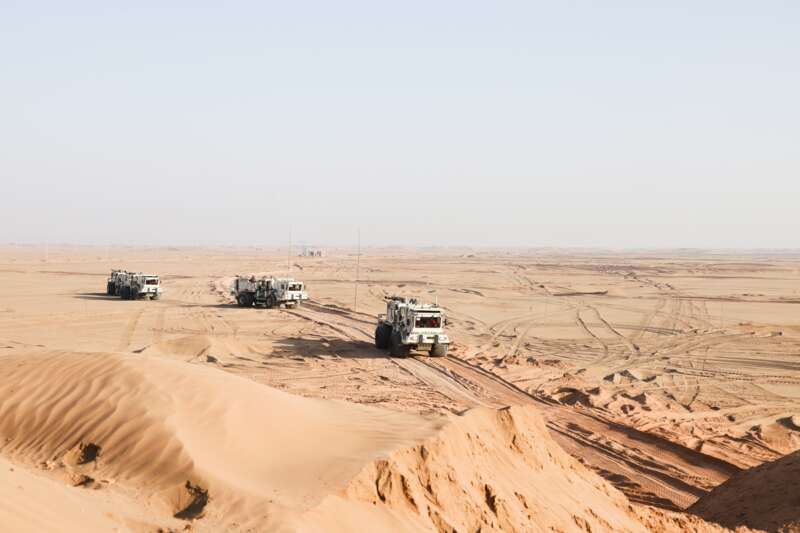 高精度可控震源在工區進行測試。中國石油東(dong) 方物探公司供圖