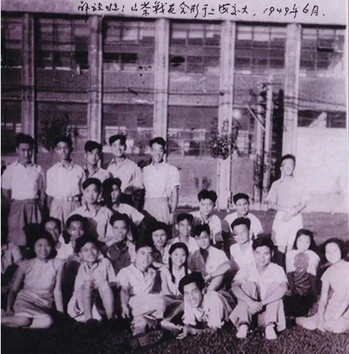 上海解放後,“山茶社”社員在上海交通大學校園合影,前排臥者為(wei) 黃旭華。新華社發