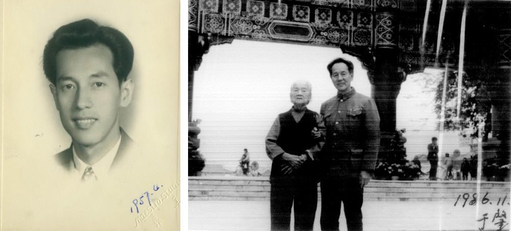 這是一張拚版照片:左圖為(wei) 1957年春拍攝的黃旭華;右圖為(wei) 1986年冬拍攝的黃旭華與(yu) 母親(qin) 的合影。新華社發