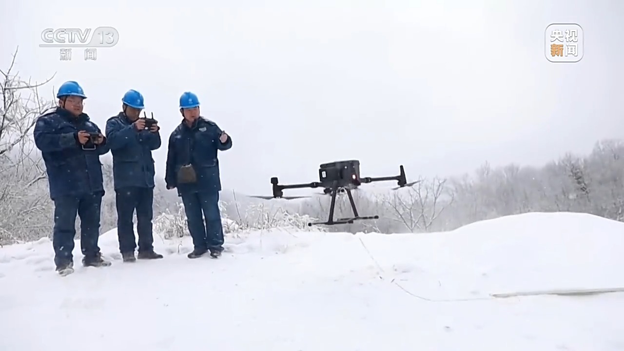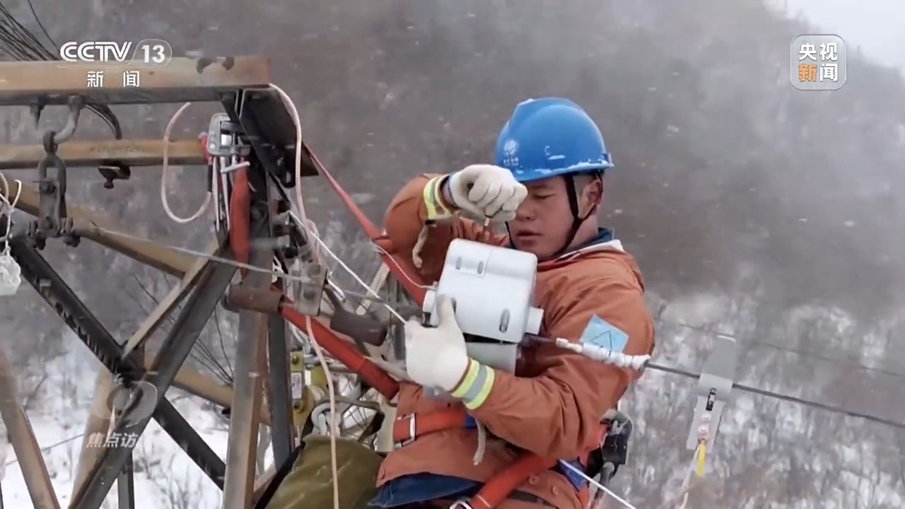 伴著2025春節的來臨(lin) ,一場降雪為(wei) 秦嶺披上銀裝。國網寶雞供電公司110千伏秦嶺融冰變電站,一台安裝在輸電鐵塔上的監測設備發生故障,工作人員正在商討對策。