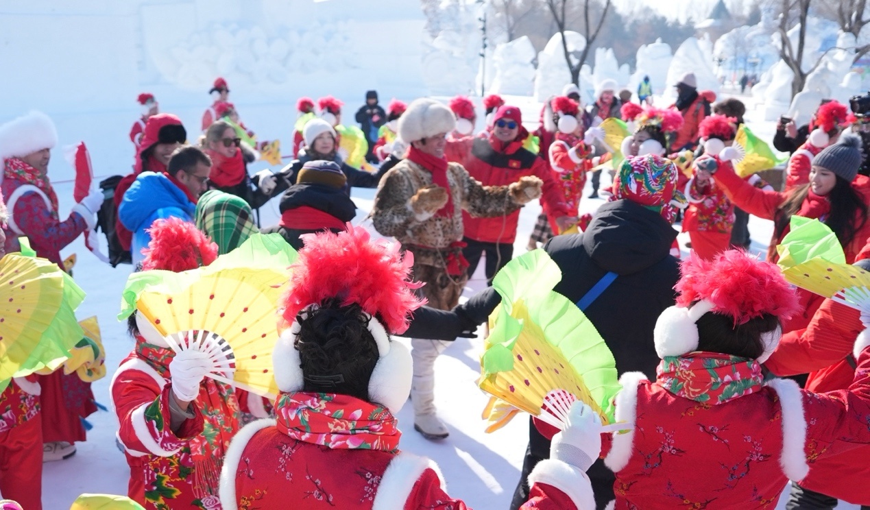 各國來賓與(yu) 哈爾濱民間秧歌隊一同載歌載舞
