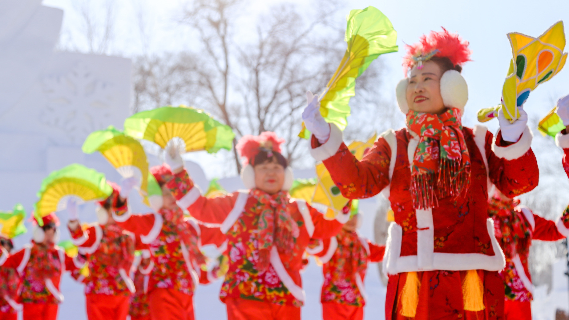 哈爾濱民間秧歌隊激情演繹迎賓秧歌舞