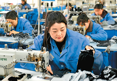 近日,在山東(dong) 省濟寧市嘉祥縣的一家企業(ye) 車間內(nei) ,工作人員在縫製滑雪手套。作為(wei) 中國重要的滑雪手套生產(chan) 基地之一,嘉祥縣手套產(chan) 品遠銷60多個(ge) 國家和地區。新華社記者 郭緒雷 攝