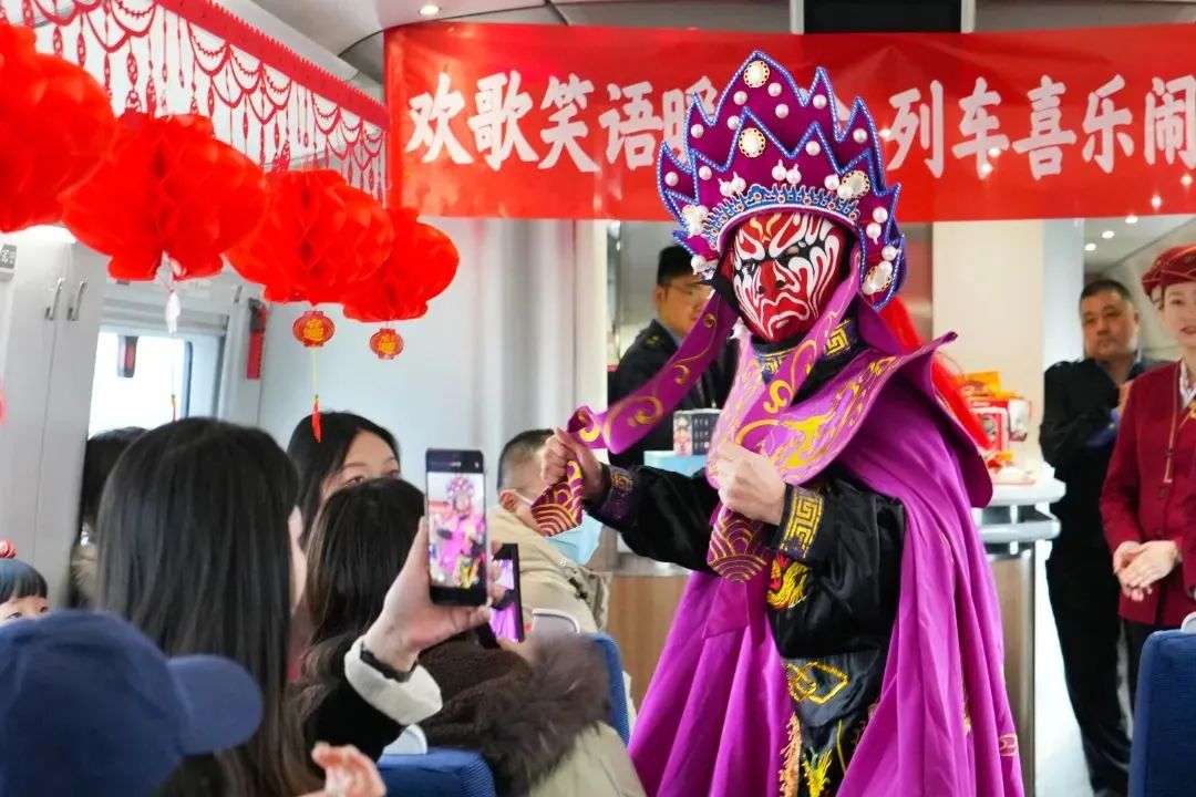 在高鐵列車上看變臉表演,體(ti) 驗太棒了!中國高鐵牛!中國非遺牛!