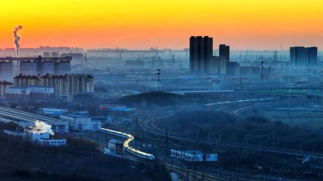 高鐵列車駛過北京園博園,凝望窗外的風景,冰封的水麵與(yu) 藍天相映成趣,遠處的永定塔清晰可見,一幅寧靜壯美的冬日畫卷在眼前徐徐展開。