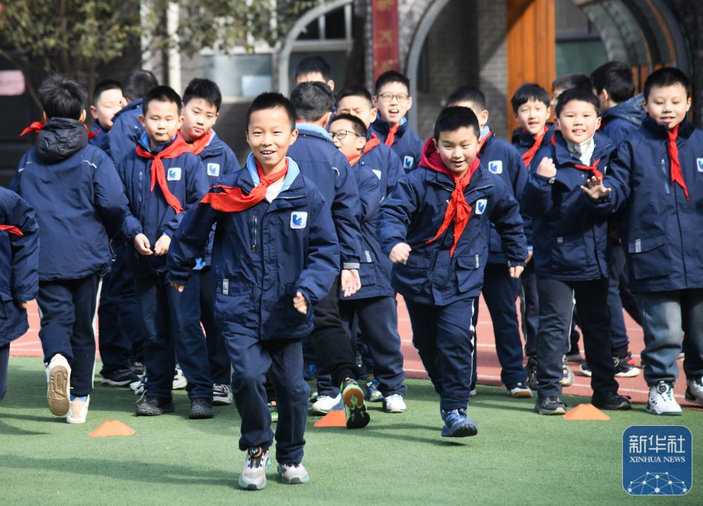 2月14日,西安市後宰門小學學生在體(ti) 育課上進行熱身活動。新華社記者 張博文 攝