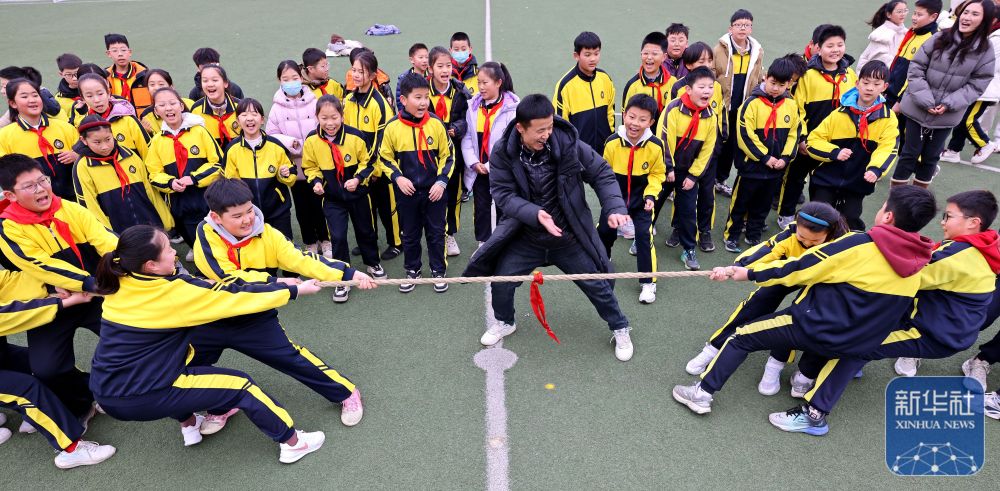 2月14日,山東(dong) 省棗莊市市中區東(dong) 湖小學學生們(men) 在參加拔河比賽。新華社發(孫中喆攝)
