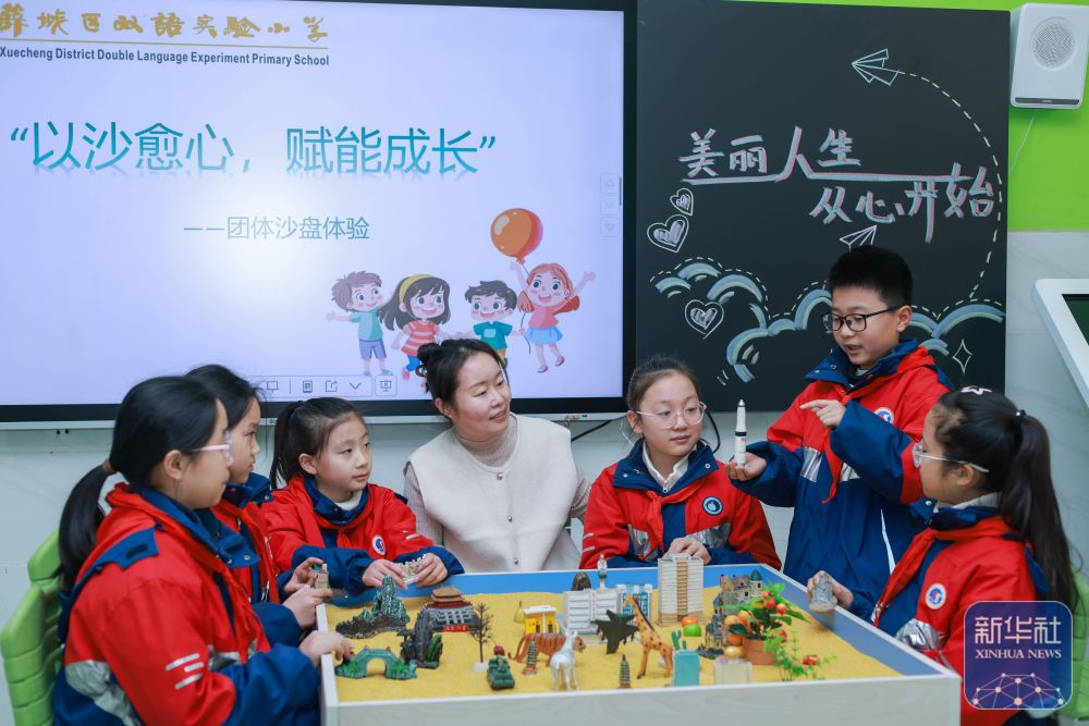 2月14日,山東(dong) 省棗莊市薛城區雙語實驗小學老師為(wei) 學生進行心理健康教育。新華社發(王龍飛攝)