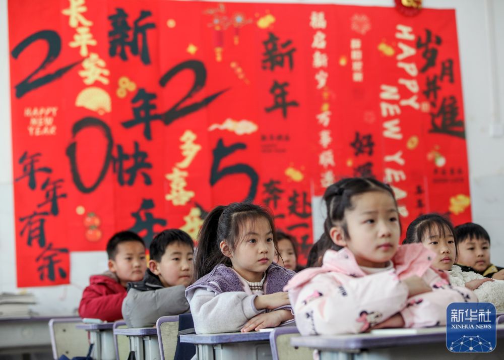 2月14日,在河南省焦作市博愛縣清化鎮街道七街小學,學生在聽課。新華社發(程全攝)