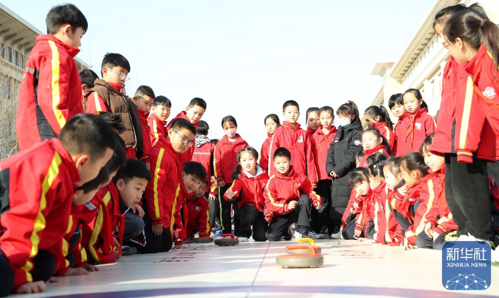 2月14日,河北省滄州市東(dong) 光縣第三實驗小學的學生們(men) 在課間參加陸地冰壺活動。新華社發(周洋攝)