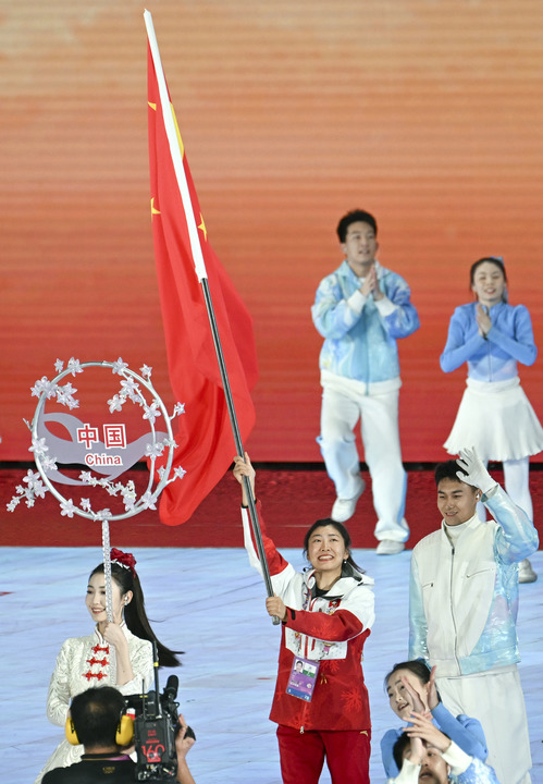 自由式滑雪運動員徐夢桃擔任中國代表團的旗手。35歲的她,是中國雪上項目的傳(chuan) 奇人物,實現了冬奧會(hui) 、世錦賽、世界杯等多項大賽的大滿貫,成為(wei) 中國雪上項目首位實現“全滿貫”的運動員。在本屆亞(ya) 冬會(hui) 上,她以 90.94 分的成績奪得女子空中技巧金牌,還帶領團隊在多個(ge) 項目中斬獲佳績。她堅韌不拔的精神和卓越的競技表現,正是中國冰雪運動員的代表。