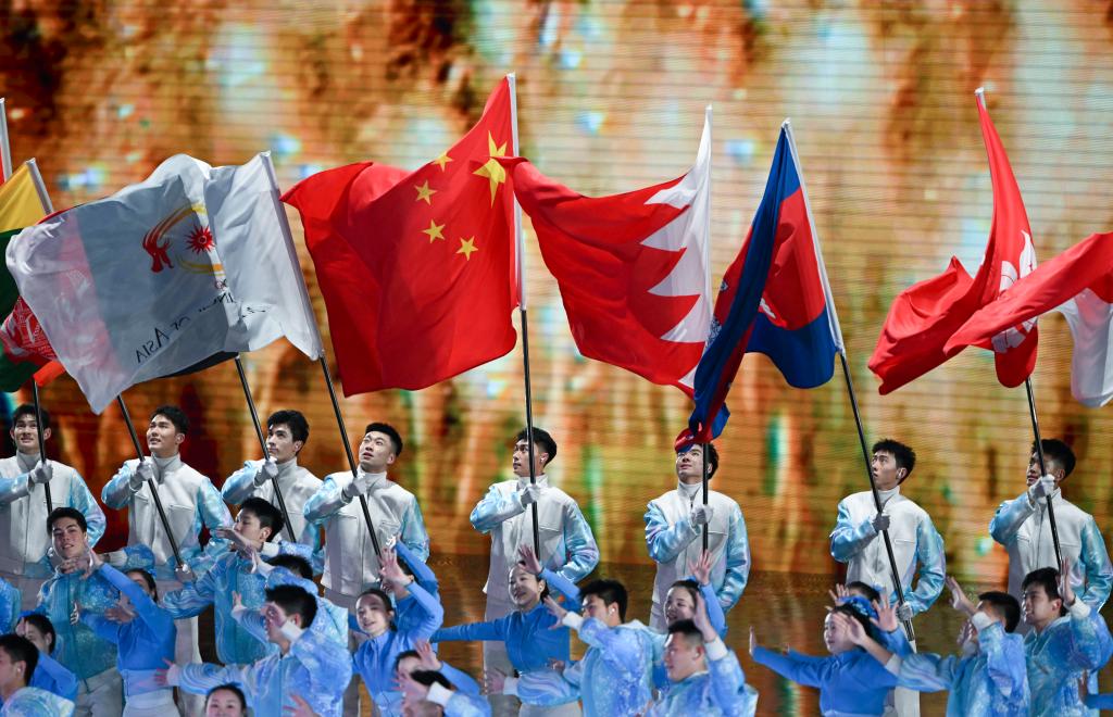 這是2月14日拍攝的各體(ti) 育代表團入場環節。當日,第九屆亞(ya) 洲冬季運動會(hui) 閉幕式在哈爾濱舉(ju) 行。新華社記者 黃博涵 攝