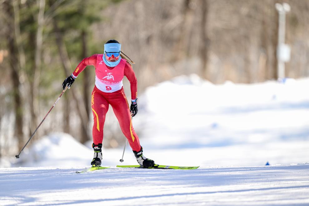 2月9日,中國選手巴亞(ya) 尼·加林在第九屆亞(ya) 冬會(hui) 越野滑雪女子5公裏(自由技術)比賽中。新華社記者 連振 攝