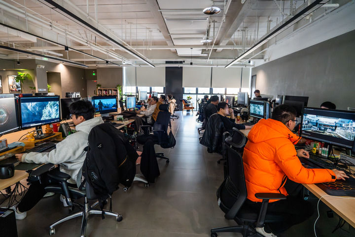 2月10日拍攝的《哪吒之魔童鬧海》(《哪吒2》)視覺特效製作公司墨境天合成都數字圖像科技有限公司的工作區。新華社記者 薛晨 攝
