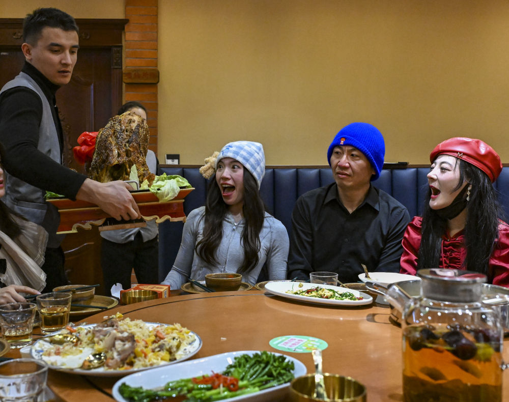 1月28日,雪友們(men) 在阿勒泰市區一家餐廳吃年夜飯。新華社記者 陳朔 攝