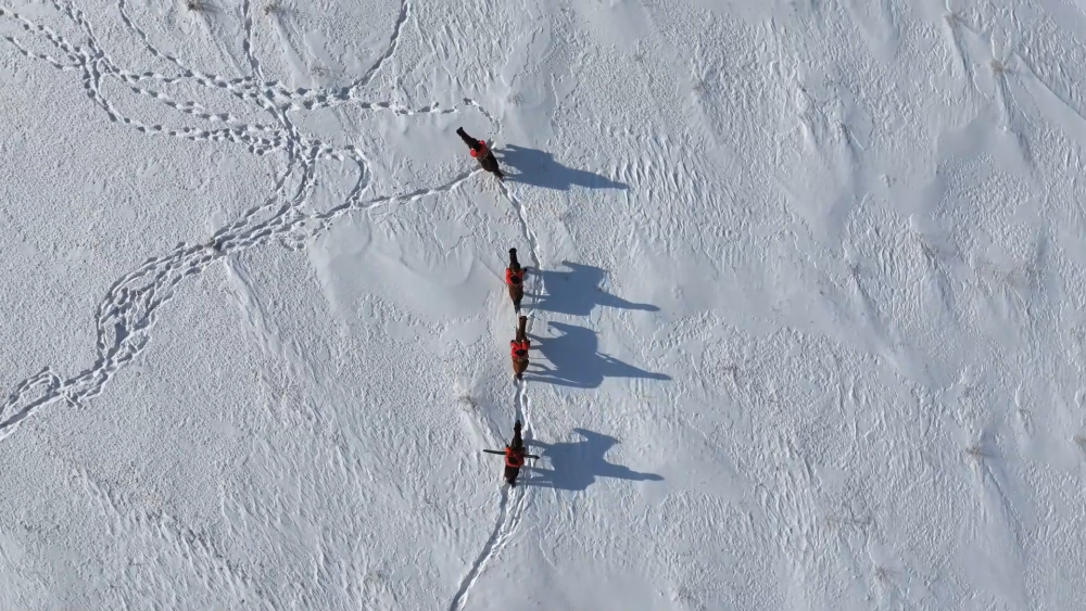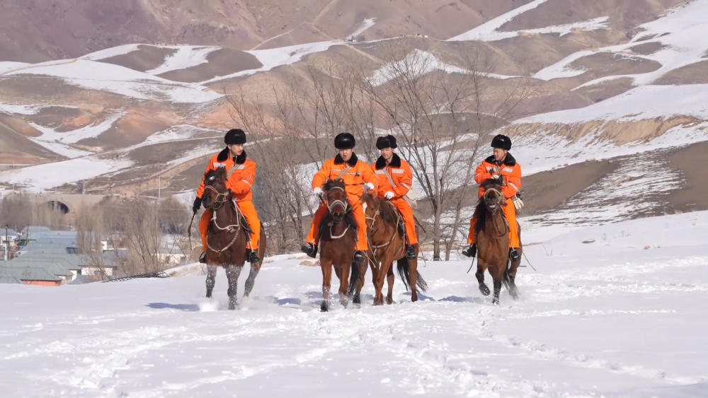 蘇布台值守點職工平均年齡27歲,有4名“00後”,分別來自陝西、湖南、黑龍江和新疆。冬日裏,列車沿精伊霍鐵路穿行在崇山峻嶺間,有一群人翻山越嶺,默默守護著這條鐵路的安全暢通。