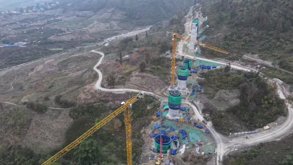 羊架河特大橋全長2428米,是黃百鐵路貴州段最長大橋。“大橋有57個(ge) 橋墩,最高墩高達117米,相當於(yu) 近40層樓的高度,安全風險大、施工要求高。”袁紹玉說,工人們(men) 正月初八就全部到崗上班,鼓足幹勁衝(chong) 刺橋梁建設節點目標。