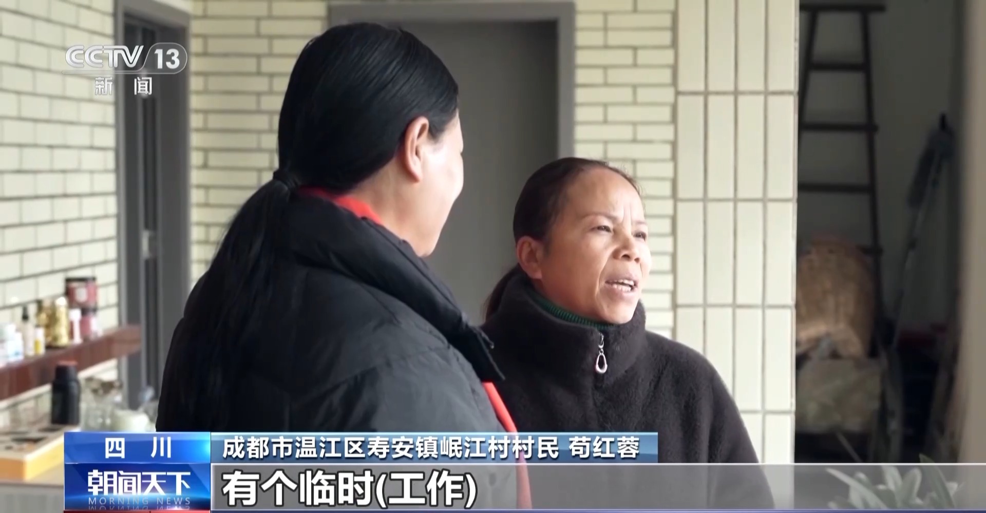 成都市溫江區壽安鎮岷江村村民 苟紅蓉:讓我們(men) 這些在家裏照顧老人的,有個(ge) 臨(lin) 時工作,有點兒(er) 收入。每天在家裏,除了地頭和照顧老人,好多時候也沒有啥事了。