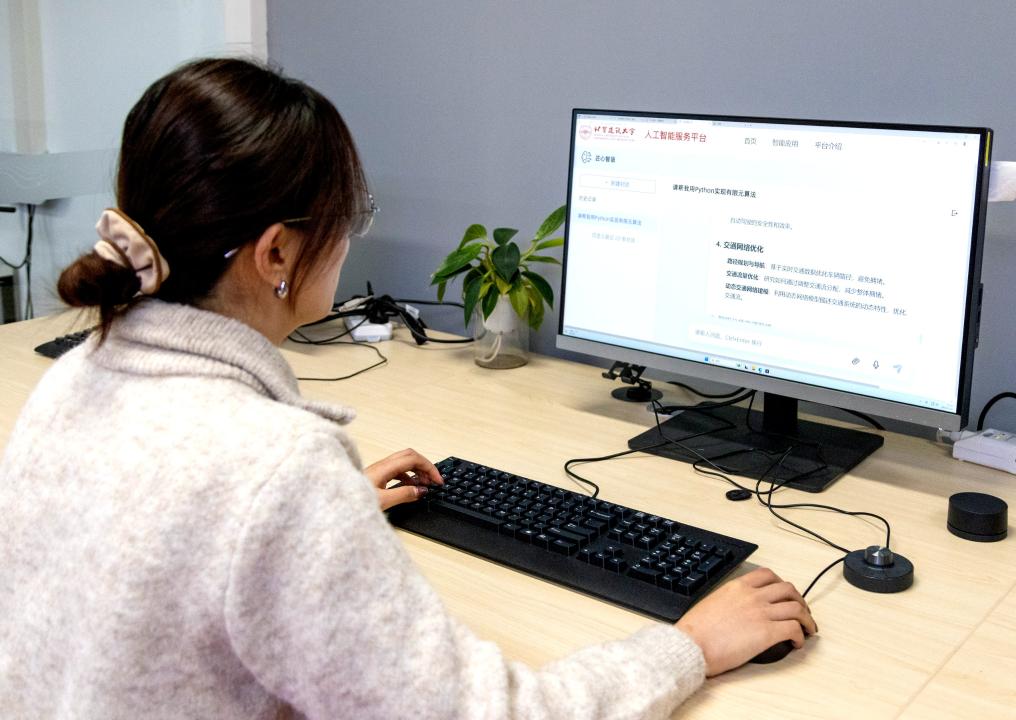 北京建築大學學生體(ti) 驗該校基於(yu) DeepSeek打造的“匠心智語”人工智能平台。新華社發