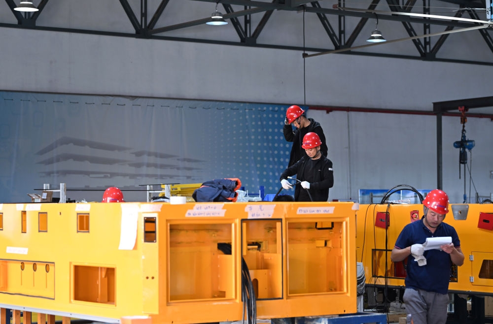 工作人員在天津朗譽機器人有限公司組裝設備。 新華社記者 李然 攝