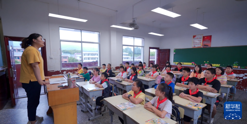 湖南第一師範畢業(ye) 生秦葉仁在給湖南省寧鄉(xiang) 市龍田鎮的孩子們(men) 上課。(資料照片)