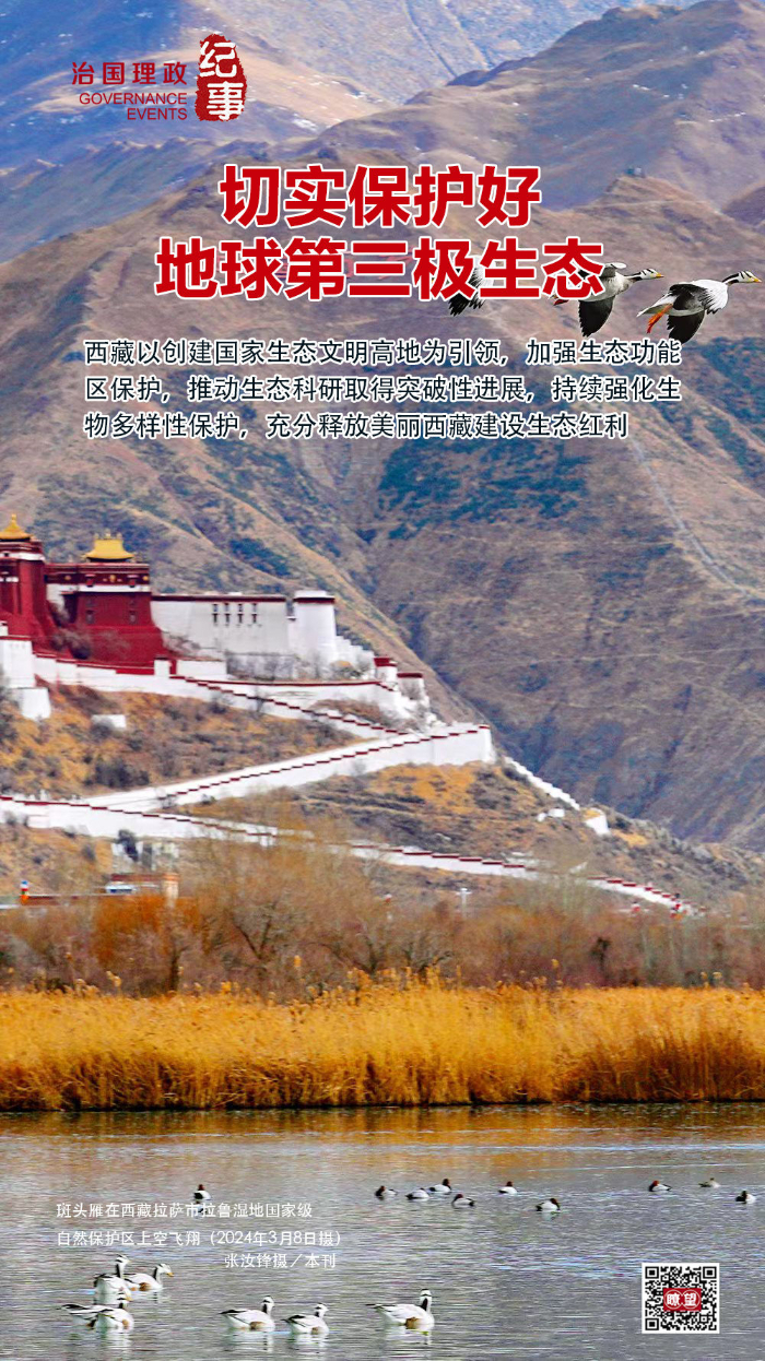 保護脆弱敏感生態環境,實行特殊機製。西藏建立起以國家公園為(wei) 主體(ti) 的自然保護地體(ti) 係,將超過60萬(wan) 平方公裏的國土納入生態保護紅線,占全區國土麵積的50%以上。