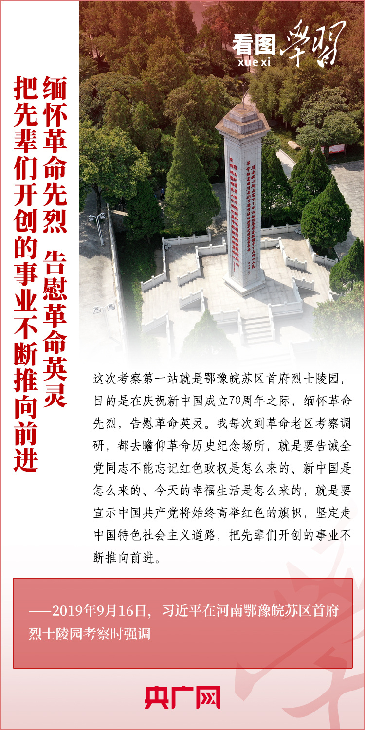 緬懷革命前輩,告慰先烈英靈。黨(dang) 的十八大以來,習(xi) 近平總書(shu) 記多次在重大活動、赴地方調研時,或深情追憶革命前輩、英雄烈士,或向革命紀念場館禮敬鮮花、關(guan) 心看望英烈親(qin) 屬。總書(shu) 記勉勵大家要繼承革命先烈遺誌,把他們(men) 流血犧牲打下的紅色江山守護好、建設好,以實現中華民族偉(wei) 大複興(xing) 來告慰革命前輩和先烈。