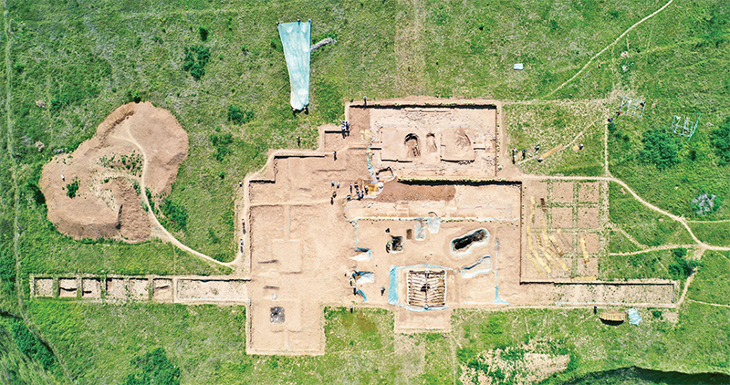 甘肅省隴南市禮縣一帶是早期秦文化發祥地,被譽為(wei) “秦人故裏”。四角坪遺址位於(yu) 禮縣四格子山頂部,是目前已發現的罕見的規模宏大、格局規整的秦代大型建築群,體(ti) 現了中國古代統一國家形成初期的風格和氣魄,被評為(wei) 2023年度全國十大考古新發現之一。圖為(wei) 2022年6月10日拍攝的考古發掘現場。 新華社記者 陳斌/攝