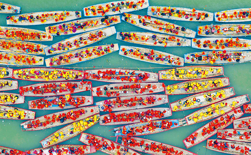 溱潼會(hui) 船由南宋相沿至今,曆經數百年傳(chuan) 承,被列入國家級非物質文化遺產(chan) 名錄。圖為(wei) 2024年4月6日在江蘇省泰州市薑堰區溱湖國家濕地公園參加會(hui) 船表演的船隻。 新華社發 湯德宏/攝