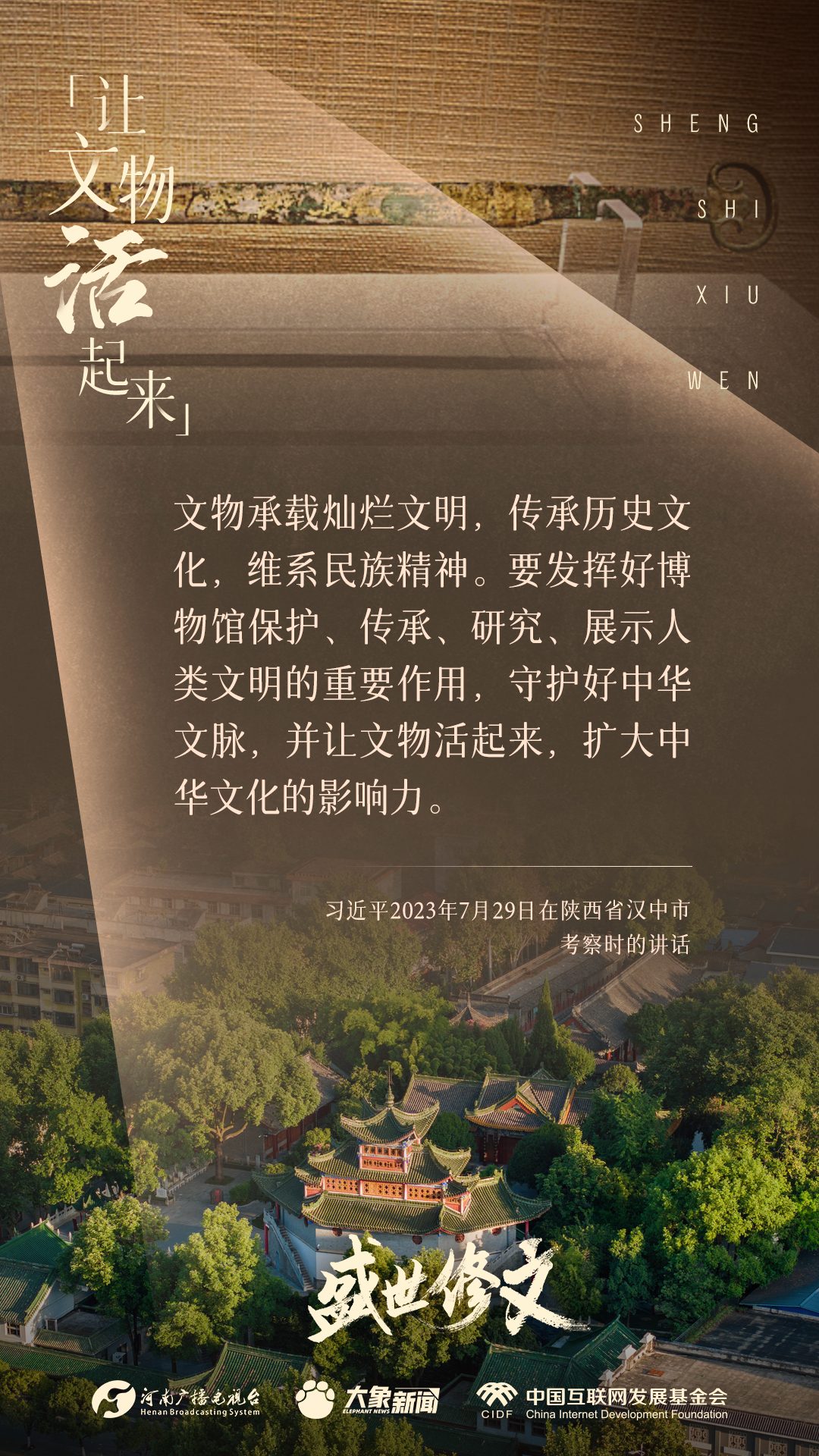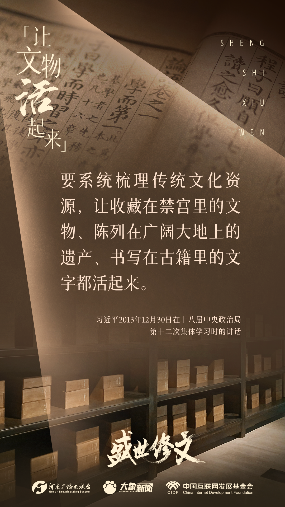 今天推出:習(xi) 近平文化思想金句之《盛世修文|讓文物活起來》