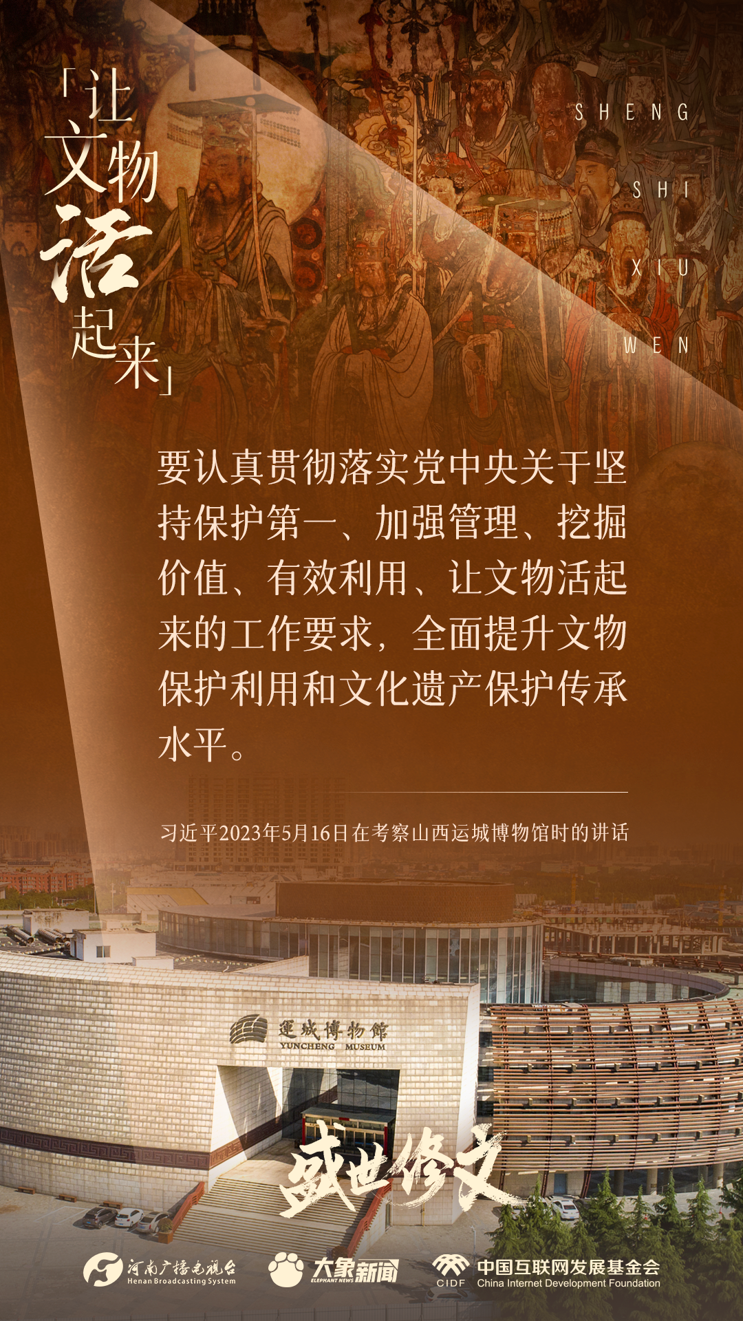 關(guan) 於(yu) 如何做好文物保護、利用,總書(shu) 記多次提出“讓文物活起來”,為(wei) 廣大文物工作者指明了方向。大象新聞與(yu) 您一起,細品這些重要論述。