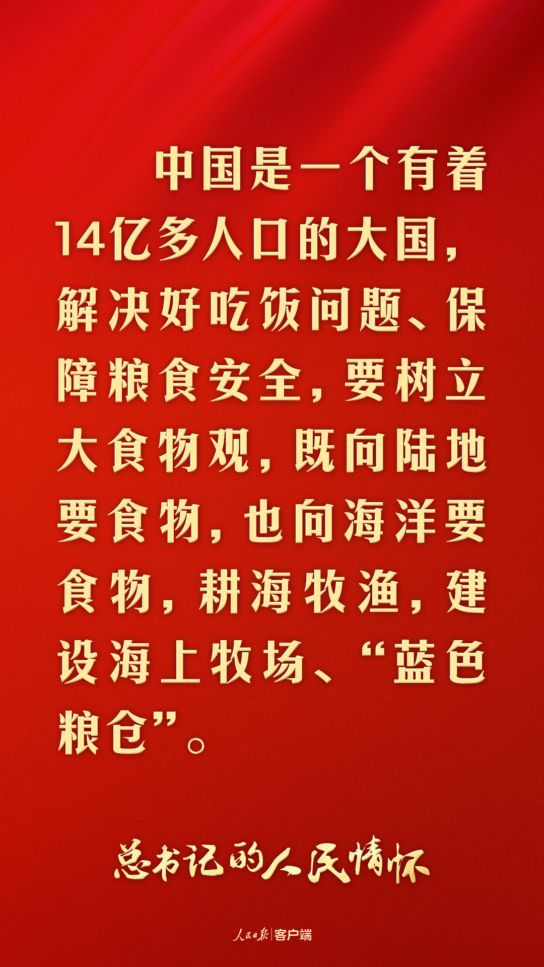 向江河湖海要食物。到廣東(dong) 東(dong) 海島上看海水養(yang) 殖,習(xi) 近平總書(shu) 記強調:“提高我們(men) 國民的身體(ti) 素質,把水產(chan) 搞上去,把蛋白質搞上去很重要。”
