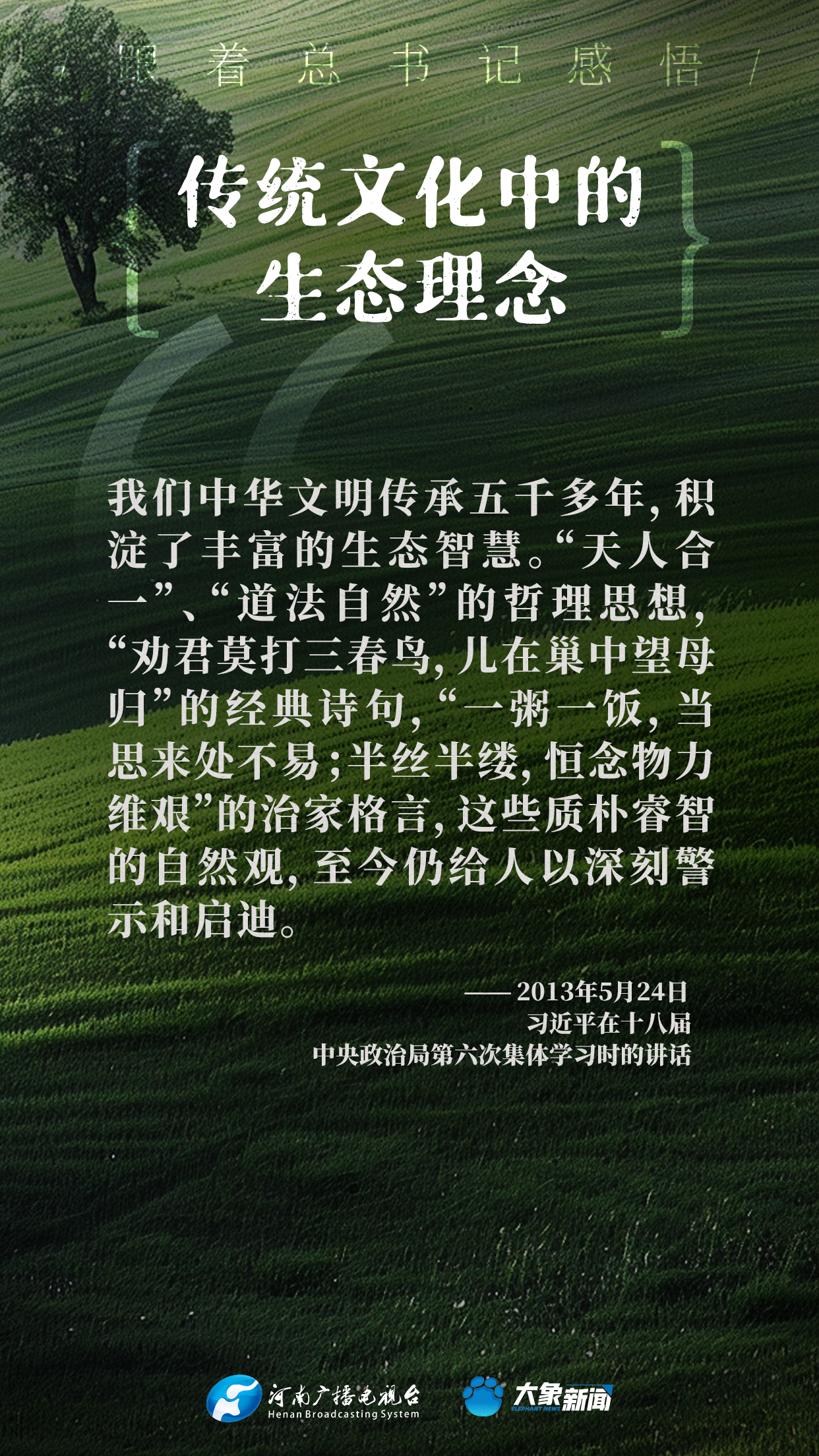 大象新聞邀您一起,跟著總書(shu) 記,感悟中華優(you) 秀傳(chuan) 統文化中蘊含的生態理念。