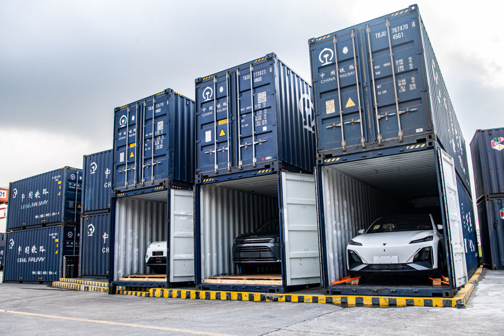 2023年1月22日,一趟西部陸海新通道鐵海聯運班列從(cong) 重慶團結村中心站發車(無人機照片)。班列滿載著汽車、摩托車、發動機和純堿等共計100個(ge) 集裝箱的貨物,將經廣西欽州港換乘海船去往印度尼西亞(ya) 、菲律賓、喀麥隆、澳大利亞(ya) 等國家和地區。