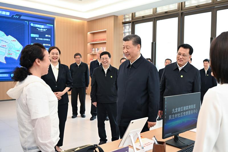2024年4月22日,習(xi) 近平總書(shu) 記來到重慶九龍坡區謝家灣街道民主村社區,察看小區改造和便民服務情況,聽取提升基層治理效能、為(wei) 基層減負情況介紹。