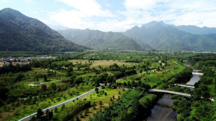 陝西省西安市長安區秦嶺違建別墅“群賢別業(ye) ”拆除後建設的秦嶺和諧森林公園。
