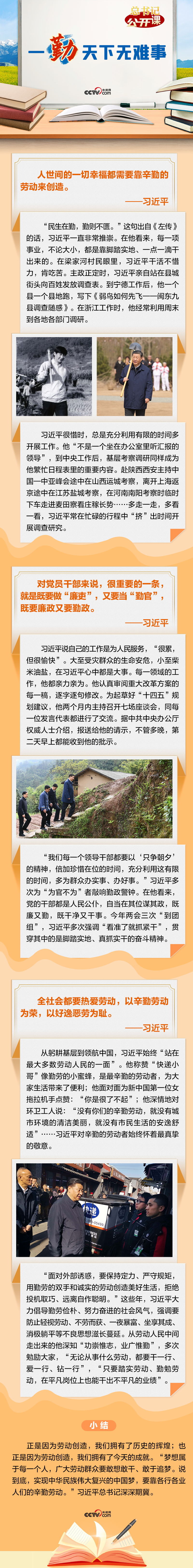 習(xi) 近平總書(shu) 記強調,“一勤天下無難事”,“實現中華民族偉(wei) 大複興(xing) 的中國夢,要靠各行各業(ye) 人們(men) 的辛勤勞動”。“勤”是貫穿總書(shu) 記從(cong) 政生涯的品質,是對他夙夜在公、勤勉工作最為(wei) 凝練的概括。