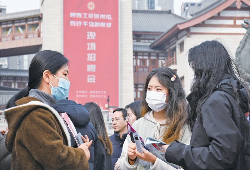2024年3月6日,由陝西省總工會(hui) 舉(ju) 辦的2024年陝西工會(hui) “春送崗位”就業(ye) 服務月啟動儀(yi) 式在西安舉(ju) 行。與(yu) 啟動儀(yi) 式同期舉(ju) 辦的現場招聘會(hui) 吸引約200家用人單位參加,提供崗位超過5000個(ge) 。圖為(wei) 當日求職者在現場招聘會(hui) 上與(yu) 企業(ye) 工作人員交流。 新華社記者 張博文/攝