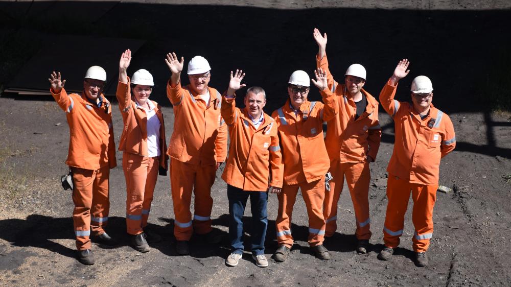 弗拉丹·米哈伊洛維奇(左四)與(yu) 工友們(men) 在斯梅戴雷沃鋼廠。