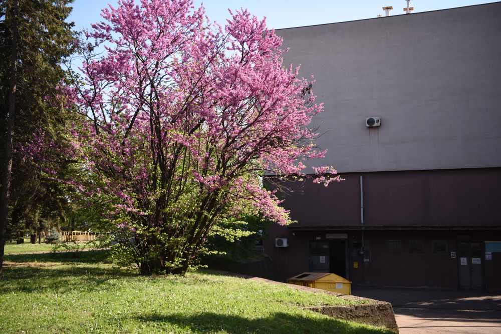 斯梅戴雷沃鋼廠裏盛開的南歐紫荊花。