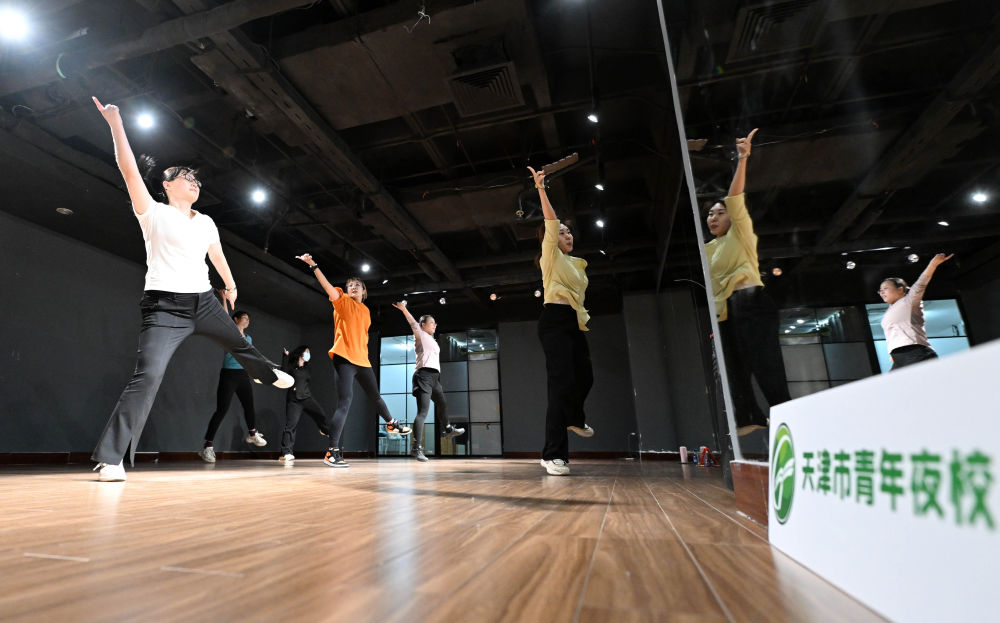 在天津青年宮,學員在青年夜校練習(xi) 有氧健身舞(2024年4月23日攝)。 新華社記者 趙子碩 攝