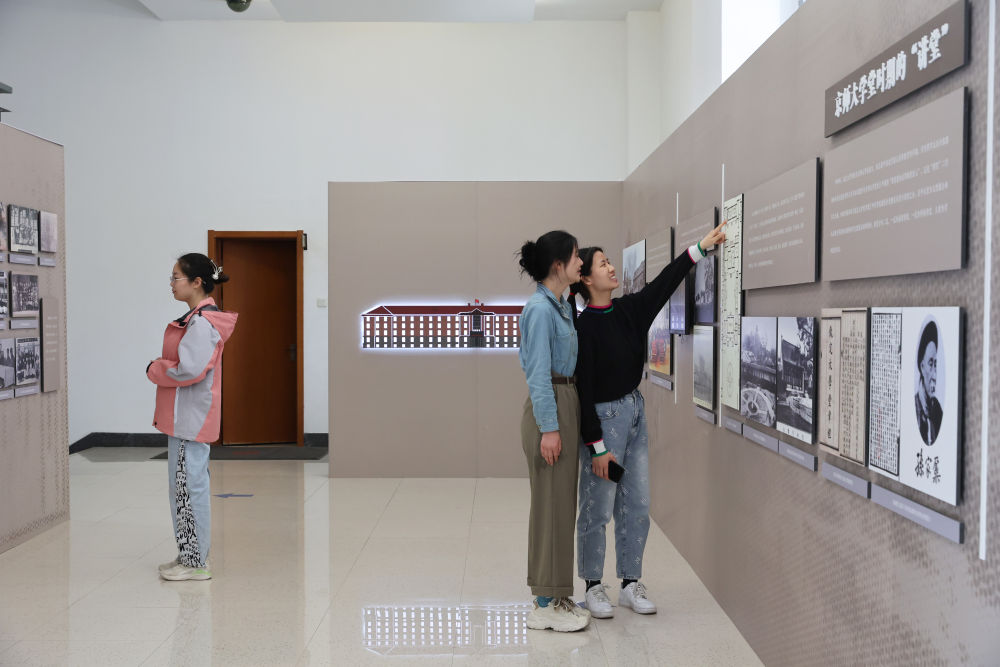 學生參觀北京大學“大講堂之路”展覽(2024年3月16日攝)。新華社記者 王翔 攝